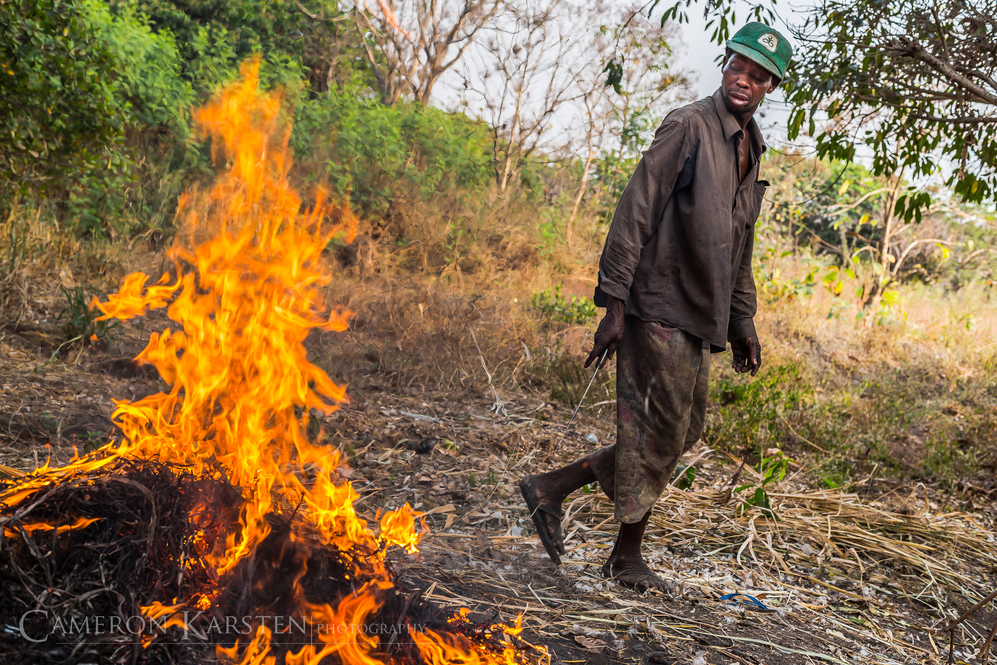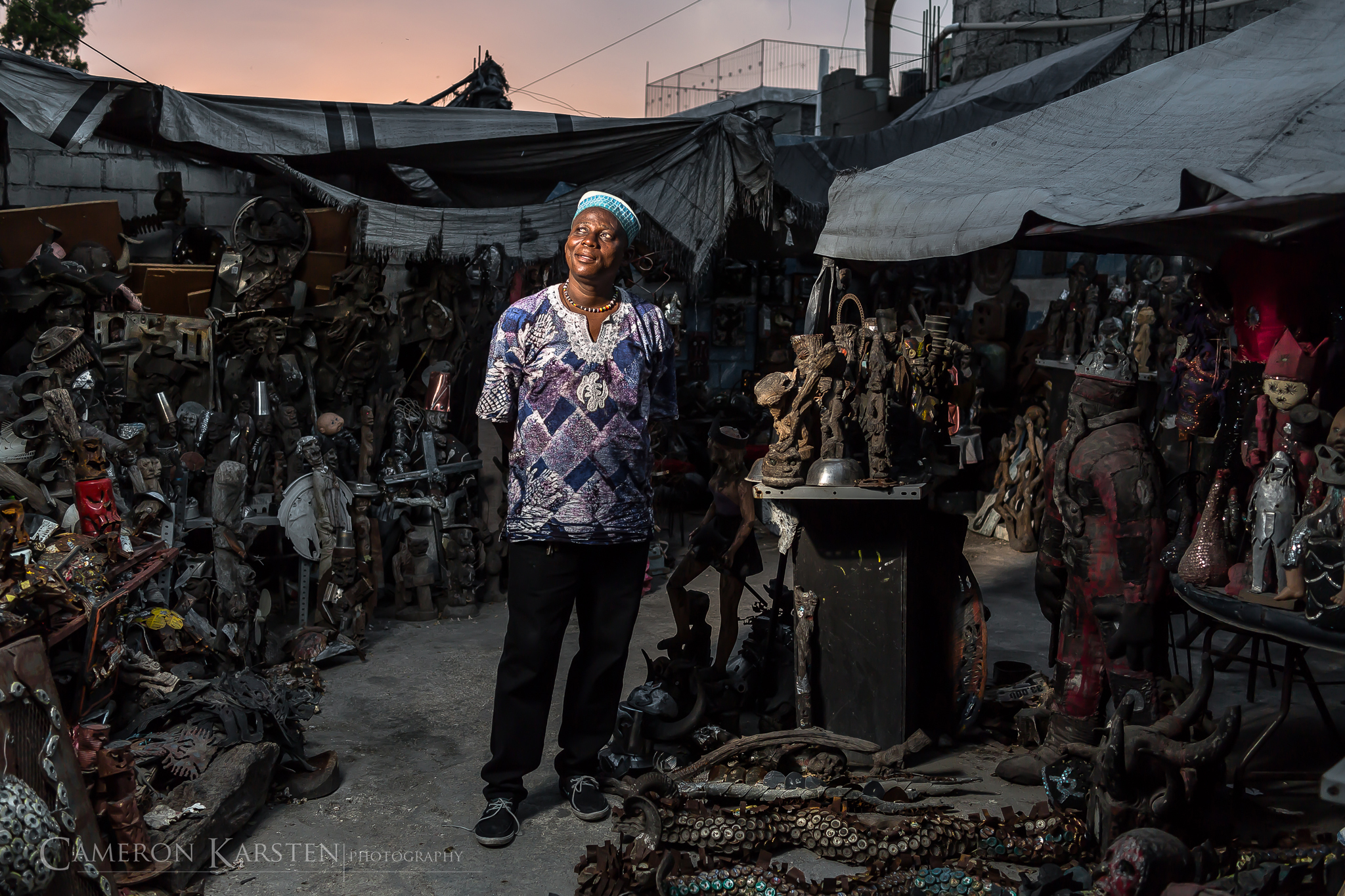 In a distant house on the farm, within crumbling walls and under a roof sagging from many heavy rains, Towakpon Amankpe has paid homage to Ogoun for 30 years. Towakpon was still young when the god and ancestors elected him to become a Vodousant, a follower of the faith. After many ceremonies and years of learning, Towakpon is now a priest, which is a marriage of sorts to the warrior god Ogoun. All of Towakpon’s efforts revolve around his god, whose wishes should be granted so he will remain gracious and continue protecting those who bring him offerings.