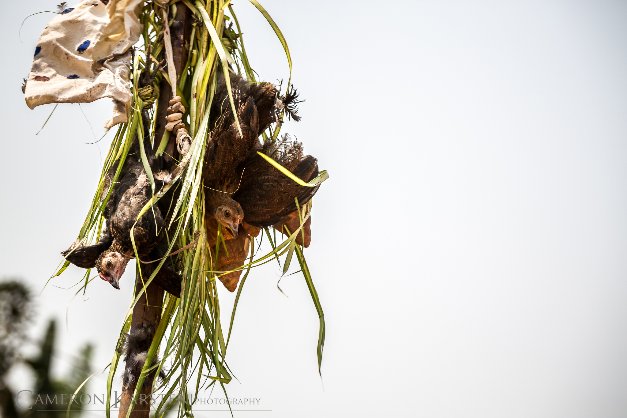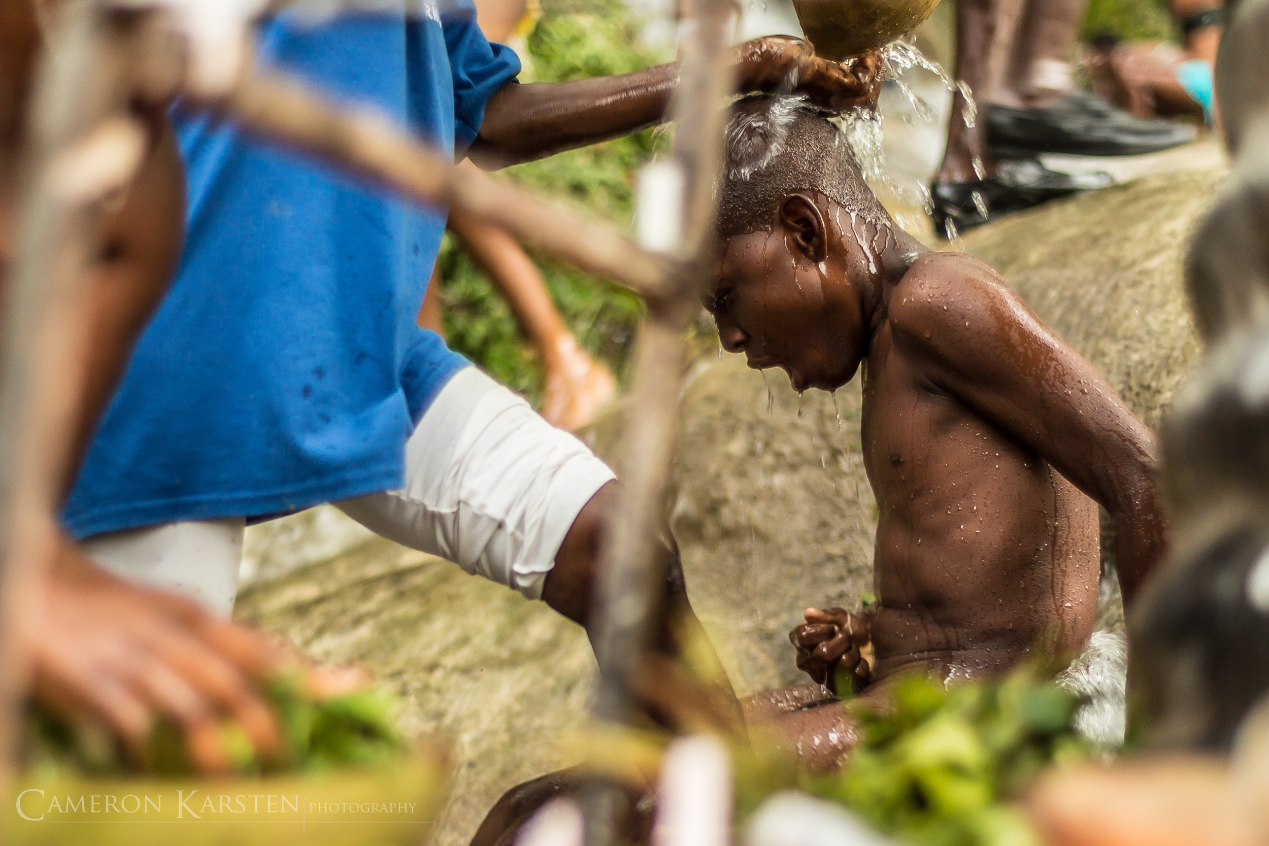 People take me outside, wrap me in white cloths as a symbol of innocence and have me kneel in the sand. I have to give money in order to honor Ogoun. Ogoun likes expensive gin, lemonade and cola nuts. It takes time to get all this, long enough that I get dizzy from the sun above the stench of a white, dying duck as it quacks its last breath.